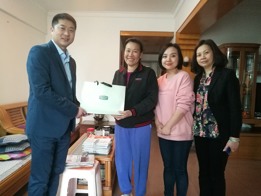 If fire can warm the body, then love must be the one that can warm the heart. On January 28th (during the Chinese New Year), FONO CARE actively organized a public welfare activity called "Gathering Love and Passing Warmth". Cheng Qianpeng, Assistant General Manager of FONO CARE, Xu Yan, Director of Civil Affairs Department in Haizhu District, and Mai Qiaoyun, Director of Jiangnan Avenue South Community Neighborhood Committee, led a delegation to visit Changgang Street in Haizhu District to offer condolences to families in need and elderly party members, offering them condolence items and holiday blessings.